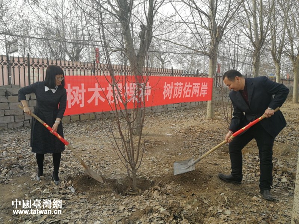 北辰區(qū)臺(tái)辦贈(zèng)送臺(tái)資企業(yè)海棠樹。(圖片來源:北辰區(qū)臺(tái)辦)