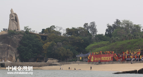 5月17日,來自海峽兩岸的民眾在廈門思明區(qū)鼓浪嶼舉行盛大頌典,共祭民族英雄鄭成功。由此,正式拉開了“鄭成功文化節(jié)”的大幕。圖為鄭功文化節(jié)的開幕之地。(中國臺灣網 邵磌 攝)