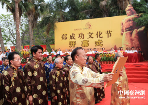 中國(guó)臺(tái)灣網(wǎng)5月17日廈門(mén)消息 三百多年前,他從廈門(mén)出發(fā),跨越海峽,驅(qū)逐荷蘭殖民者,被譽(yù)為“從16世紀(jì)開(kāi)始的經(jīng)濟(jì)全球化東亞第一人”。三百多年后的今天(5月17日),來(lái)自海峽兩岸的民眾在廈門(mén)思明區(qū)鼓浪嶼舉行盛大頌典,共祭兩岸民眾共同景仰的這位民族英雄——鄭成功。由此,正式拉開(kāi)了“鄭成功文化節(jié)”的大幕。