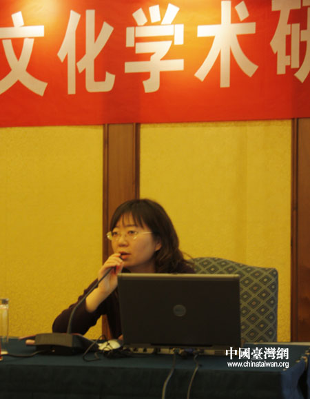 中國社科院文學(xué)研究所臺(tái)港澳文學(xué)與文化研究室副研究員李娜發(fā)言(中國臺(tái)灣網(wǎng) 徐麗華 攝)