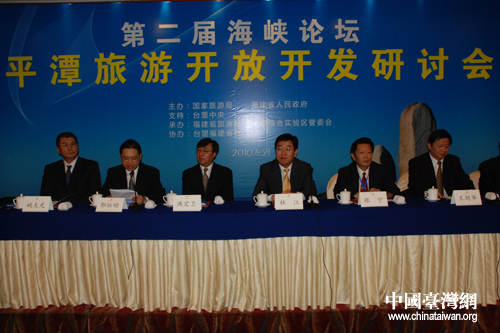 由國家旅游局和福建省人民政府共同舉辦的海峽論壇·平潭旅游開放開發研討會于2010年6月21日上午在福州市舉行。國家旅游局副局長杜江、臺盟中央秘書長張寧等出席會議。(中國臺灣網 趙輝 攝)