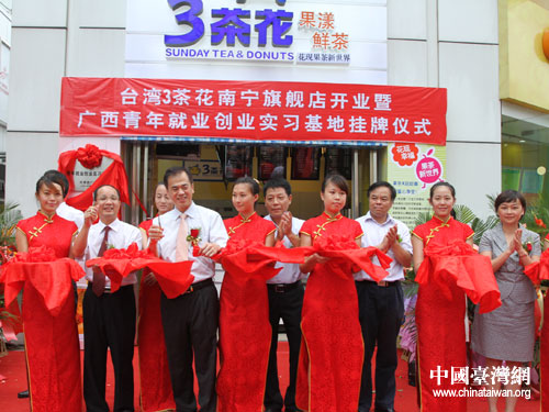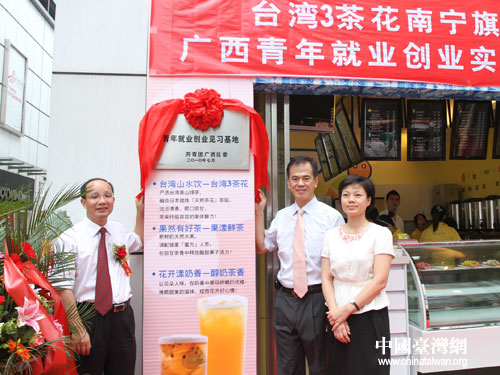 中國(guó)臺(tái)灣網(wǎng)7月19日南寧消息 7月17日,臺(tái)灣3茶花南寧旗艦店開業(yè)暨廣西青年就業(yè)創(chuàng)業(yè)實(shí)習(xí)基地掛牌儀式在南寧舉行,這是共青團(tuán)廣西區(qū)委在臺(tái)資企業(yè)設(shè)立的第一個(gè)青年就業(yè)創(chuàng)業(yè)實(shí)習(xí)基地,也是不久前廣西自治區(qū)黨委書記郭聲琨率大型經(jīng)貿(mào)文化代表團(tuán)赴臺(tái)交流后落實(shí)的第一個(gè)成果。共青團(tuán)廣西區(qū)委、廣西青年聯(lián)合會(huì)、廣西臺(tái)辦、南寧市臺(tái)辦等有關(guān)部門代表及部分廣西青年企業(yè)家和大學(xué)生代表出席儀式。