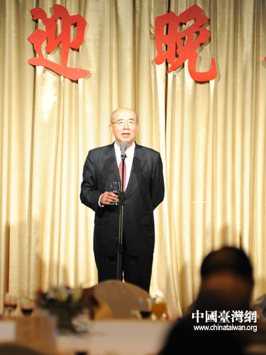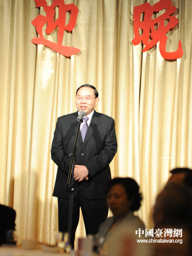 中國國民黨榮譽(yù)主席吳伯雄在臺北圓山大飯店會見并宴請中共湖南省委副書記梅克保一行。圖為吳伯雄致辭。(湖南省臺辦 李蘭 攝)