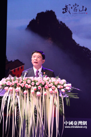 中共中央臺辦、國務院臺辦主任助理、海協會副會長李亞飛,湖北省副省長田承忠等出席論壇開幕式。海峽兩岸關系協會會長陳云林、中國國民黨榮譽主席連戰為論壇題詞。陳云林題詞:“仙山云篆,薈萃武當,同根一脈,緣循兩岸”,連戰題詞為:“和平橋梁”。