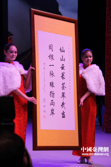 海峽兩岸關系協會會長陳云林題詞:“仙山云篆,薈萃武當,同根一脈,緣循兩岸”。(中國臺灣網 李丹 攝)