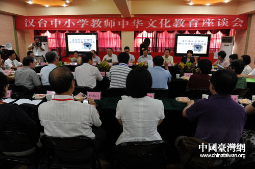 21日上午,參訪團(tuán)一行來(lái)到武漢市常青實(shí)驗(yàn)小學(xué),武漢、臺(tái)灣兩地中小學(xué)校長(zhǎng)、教師在座談會(huì)上暢所欲言,就兩岸中小學(xué)中華文化教育問(wèn)題進(jìn)行主題交流。