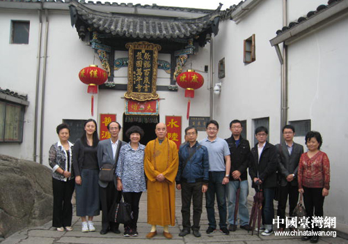 交流團(tuán)在九華山百歲宮合影。(圖片來源:池州市臺辦)