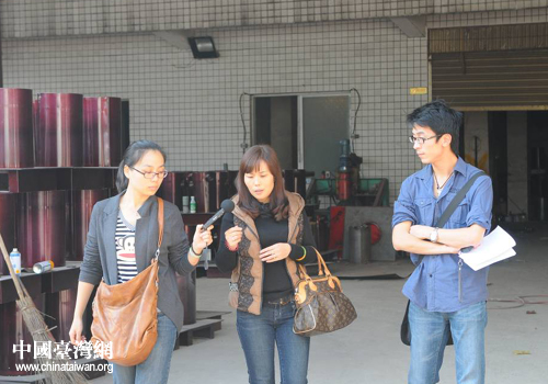 《兩岸愛(ài)心地圖》采訪(fǎng)組在瀘州市敘永縣采訪(fǎng)回鄉(xiāng)辦企業(yè)的大陸新娘曾維秀。(圖片來(lái)源:四川省臺(tái)辦)