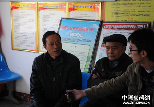 《兩岸愛(ài)心地圖》采訪(fǎng)組在德陽(yáng)市中江縣光明村采訪(fǎng)村民。(圖片來(lái)源:四川省臺(tái)辦)