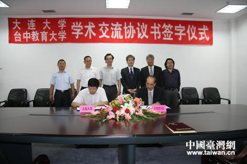 臺中教育大學與大連大學簽署《大連大學與臺中教育大學學術交流協議書》。(圖片來源:大連市臺辦)