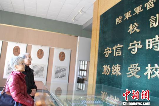臺灣著名畫家周榮源與夫人共閱保定軍校校訓。 李芳華 攝