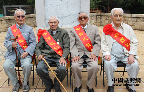 中國遠征軍抗戰老兵,右起依次為:王惠生(90歲)、萬云鵬(93歲)、肖朝青(101歲)、顏嘉銘(98歲)。(中國臺灣網 王文英攝)