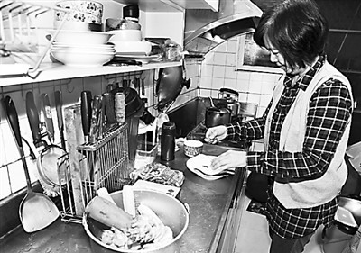 臺北:臺北市民鐘克臣的太太在家中清洗食材,準備餐食(2月14日攝)。吳景騰攝(新華社發)