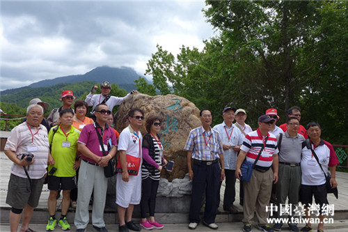 臺灣網絡媒體人在五指山合影。(中國臺灣網 段雯婷 攝)