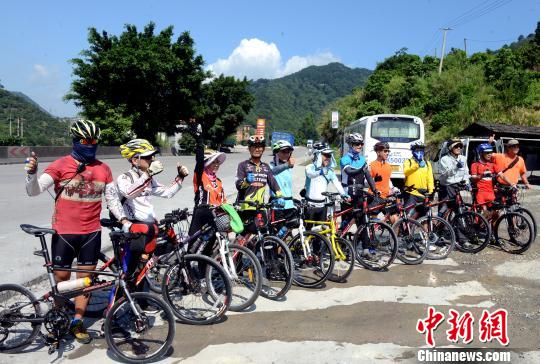 7月26日,13名來自臺灣及香港的單車手在福州市閩侯縣竹岐鄉火炬村啟程,開始絲綢之路中國大陸段8000余公里的騎行。 記者劉可耕 攝
