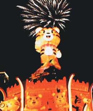 桃園燈會(huì)桃樂(lè)虎昨晚試燈,非常可愛(ài)。記者吳佩玲/攝影