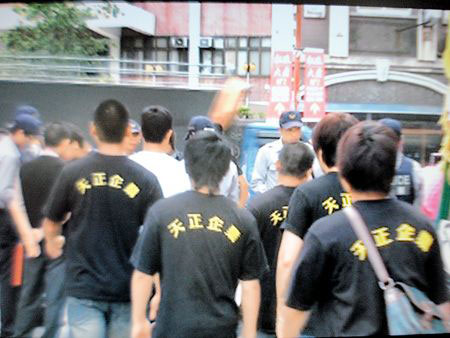 臺北縣樹林陳姓黑道頭目的父親11日舉行公祭,現場涌入多名黑衣少年,警方接獲情資到場搜證,將近30名少年帶回警局調查。圖片來源:臺灣《中國時報》