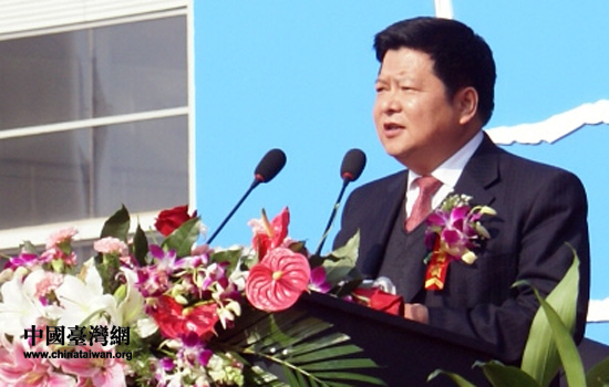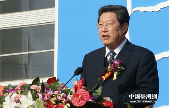 28日,魯臺經貿文化交流周暨2010山東臺灣名品博覽會在濟南國際會展中心開幕。圖為國臺辦主任助理龍明彪在開幕式上致辭。(中國臺灣網 張碩 攝)