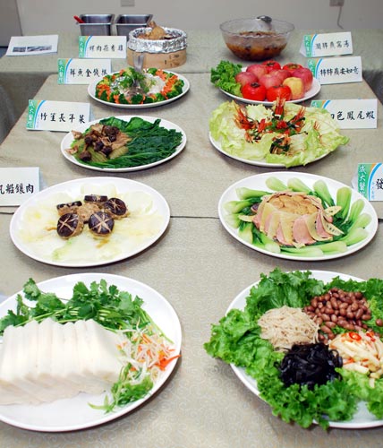 臺灣成大醫(yī)院斗六分院17日推出“兔躍春暖健康年菜”,有四色鳳尾蝦、鮮菇帆船鑲肉、螺肉蒜香雞等10道佳肴,在家烹調方便,適合全家團圓聚餐,一餐吃下來每人份熱量僅 800多大卡,可謂健康又美味。圖片來源:臺灣“中央社”