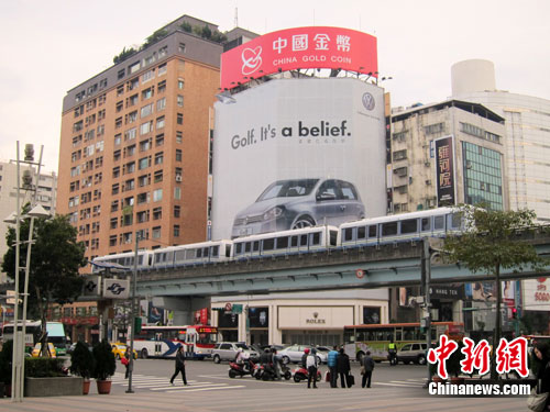 中國金幣總公司在臺灣的總經銷臺灣大洋金幣公司2月1日在臺北市車水馬龍的忠孝復興街口設大型看板推介“中國金幣”品牌。
