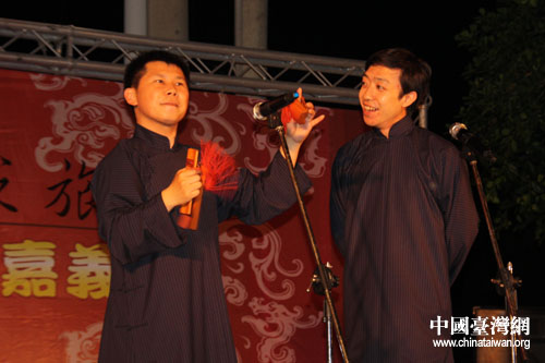 中國臺灣網5月15日嘉義消息 “地下有一張1000塊的新臺幣和一張100塊的,您撿哪張?1000的?當然是兩張都撿!”5月14日晚,伴隨著精彩的相聲演出,嘉義市民雄鄉文隆村玄德宮前笑聲、掌聲不斷。