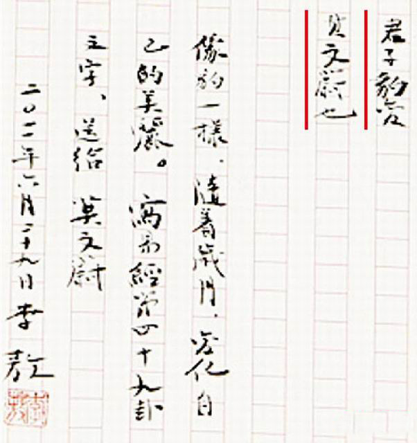 李敖親自寫“君子豹變、其文蔚也”(紅線處)送她當(dāng)禮物。圖片來源:臺灣媒體