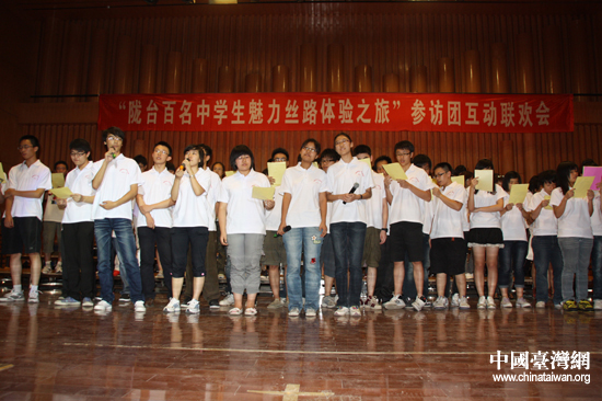 參加“隴臺(tái)百名中學(xué)生魅力絲路體驗(yàn)之旅”的兩岸學(xué)子合唱《明天會(huì)更好》(中國(guó)臺(tái)灣網(wǎng) 宿靜 攝)