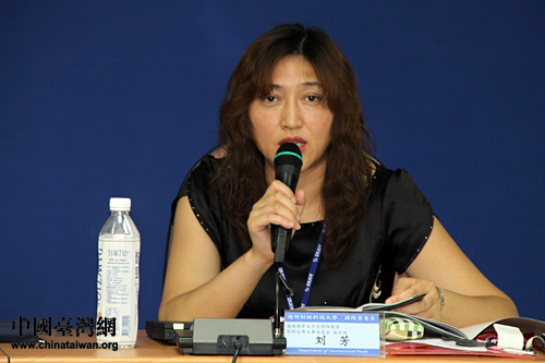 建行“e路通”杯首屆海峽兩岸大學生網絡商務創新應用大賽組委會副主任劉芳在研討會上介紹本屆大賽相關情況。(中國臺灣網 王偉 攝)