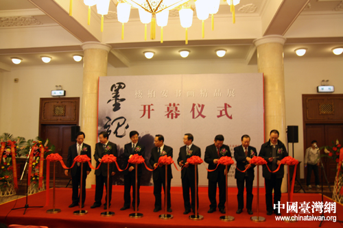 墨魂牽兩岸——臺灣著名畫家樓柏安書畫精品展在京開幕,圖為開幕式剪彩現場。(中國臺灣網 蕪同 攝)