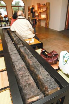 內(nèi)部保留焦黑屋梁設(shè)計而成的座椅。(圖片來自臺灣媒體)