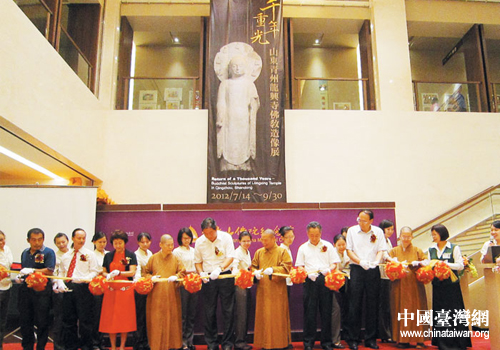 中國臺灣網8月8日高雄消息 日前,由中華文物交流協會與財團法人佛光山文教基金會聯合主辦、中國文物交流中心與佛光山佛陀紀念館承辦、山東省文物局協辦的“千年重光——山東青州龍興寺佛教造像展”,在臺灣高雄佛光山佛陀紀念館開幕。國家文物局副局長、中華文物交流協會副會長董保華,佛光山都監院院長暨佛陀紀念館副館長慧傳法師出席開幕式并講話。