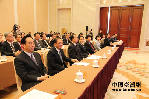 江蘇省副省長傅自應,中國國際經濟交流中心副理事長兼秘書長魏建國,臺灣華聚產業共同標準推動基金會董事長陳瑞隆亦參加了今天的通報會并分別致辭。(中國臺灣網記者 馬迪)