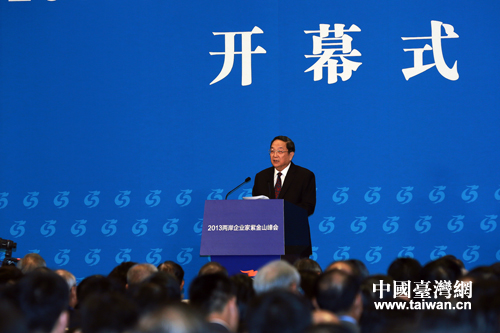 2013兩岸企業家紫金山峰會4日下午在江蘇南京開幕。中共中央政治局常委、全國政協主席俞正聲出席開幕式。(中國臺灣網 王偉 攝)
