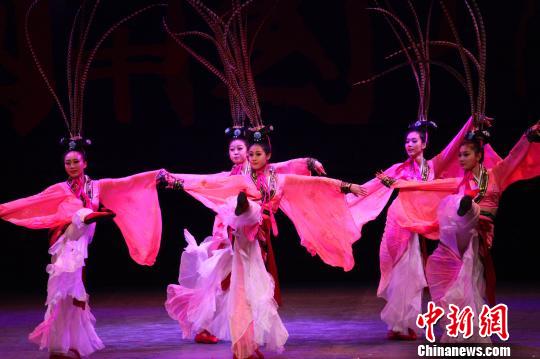“2014歡樂(lè)春節(jié)五洲同春”海外春晚首場(chǎng)演出當(dāng)?shù)貢r(shí)間9日晚間在加拿大多倫多開(kāi)幕。圖為演出的舞蹈《楚腰》。 呂蓁 攝
