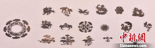 墓中出土的漆盒銀箔花飾。 資料圖 攝