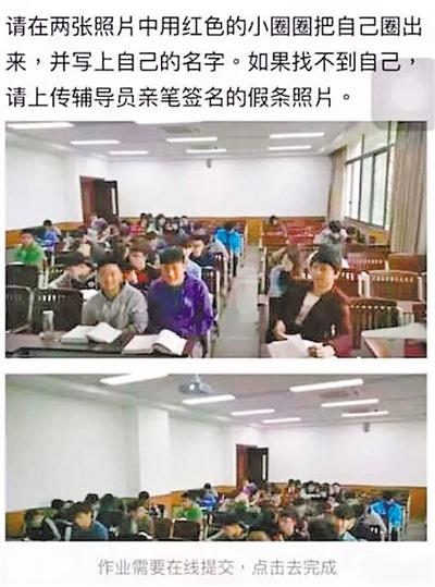 3月28日,在劉老師的課上,同學(xué)們收到了一份“簡(jiǎn)單”的作業(yè):在老師上課期間拍攝的兩張照片中,分別找到自己的頭像并圈出提交,以此做為點(diǎn)名,如果沒(méi)有找到自己則需提交輔導(dǎo)員簽名的假條。
