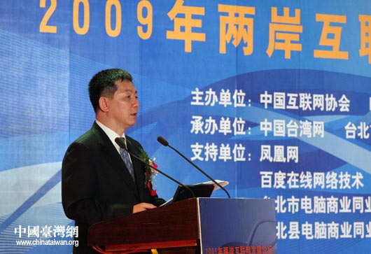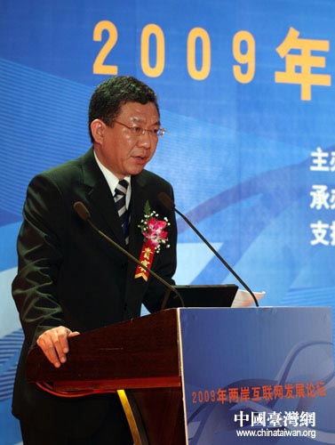 2009年兩岸互聯(lián)網(wǎng)發(fā)展論壇7月7日上午9時(shí)在北京開幕,圖為國務(wù)院臺(tái)灣事務(wù)辦公室副主任葉克冬在開幕式上致辭。(中國臺(tái)灣網(wǎng) 鐘寶華 攝)