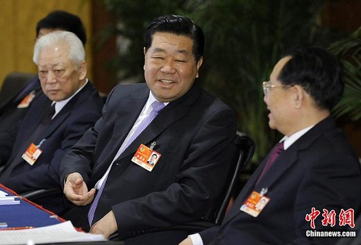3月6日,全國(guó)政協(xié)主席賈慶林來(lái)到全國(guó)政協(xié)民革、臺(tái)盟、臺(tái)聯(lián)委員聯(lián)組討論現(xiàn)場(chǎng),與委員們共商國(guó)是。中新社發(fā) 廖攀 攝