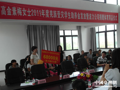 中國臺灣網6月22日綿陽消息 6月21日,臺灣知名人士、臺灣少數民族民意代表高金素梅一行赴四川綿陽開展參訪交流活動,并為其助養的20名北川羌族貧困學生發放2011年度助學金。