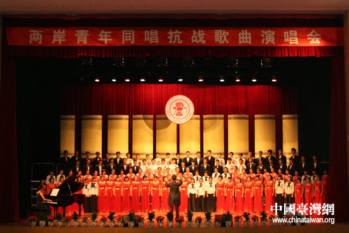 圖為兩岸青年聯合演唱抗戰歌曲(中國臺灣網 郭瑩瑩 攝)