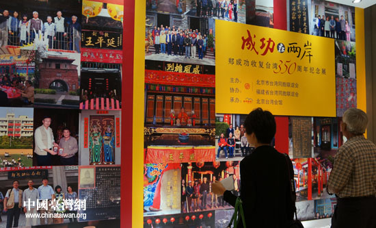 中國臺灣網8月27日北京消息 今年是民族英雄鄭成功驅逐荷蘭殖民者、收復寶島臺灣350周年。8月27日,由北京市臺聯主辦、福建省臺聯協辦的“成功在兩岸——鄭成功收復臺灣350周年紀念展”在北京臺灣會館隆重開幕。在鄭成功誕辰之日,海峽兩岸同胞齊聚臺灣會館,首次在北京共同紀念這位偉大的民族英雄。