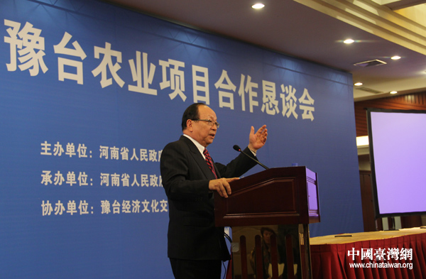 12日下午,2013年豫臺(tái)農(nóng)業(yè)合作項(xiàng)目懇談會(huì)在河南鄭州舉行。中國(guó)國(guó)民黨副主席蔣孝嚴(yán)在致辭時(shí)表示,兩岸和平發(fā)展的關(guān)系不可逆轉(zhuǎn)性,要持續(xù)、穩(wěn)健、堅(jiān)定不移地推動(dòng)兩岸和平發(fā)展。(中國(guó)臺(tái)灣網(wǎng) 普燕攝)
