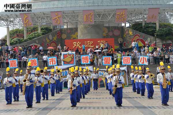 中國(guó)臺(tái)灣網(wǎng)5月2日上海消息 在5月1日開幕的“2014上海之春國(guó)際音樂節(jié)管樂藝術(shù)節(jié)上,一支身著藍(lán)白相間服裝,頂戴黃色花翎的隊(duì)伍十分引人注目。他們是來自臺(tái)灣的阿里山下的嘉義市博愛小學(xué)行進(jìn)管樂隊(duì)。