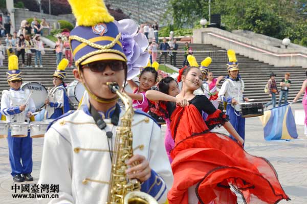 臺(tái)灣嘉義博愛管樂隊(duì)在東方明珠廣場(chǎng)表演。(葛鳳章 攝)