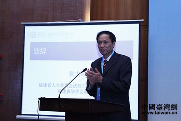 福建省人大常委會法工委主任、省法學會副會長張大共致辭。(中國臺灣網 尹賽楠 攝)
