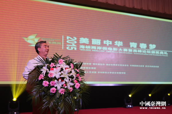 湖北省委常委、省宣傳部部長梁偉年出席第二屆海峽兩岸微電影高峰論壇頒獎典禮并致辭。(中國臺灣網 高旭 攝)