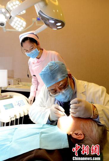 12月27日,福州市口腔醫(yī)學(xué)會常務(wù)理事、臺商黃煒峻在當(dāng)日開業(yè)的臺資康德口腔門診聯(lián)盟旗艦總部內(nèi),為首位就診的牙科患者進(jìn)行診治。 記者劉可耕 攝