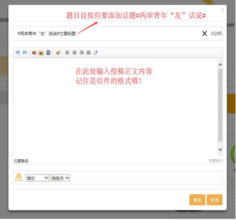2.題目自擬,在標題前添加話題#兩岸青年“友”話說#。