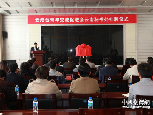 3月29日上午,云港臺青年交流促進會云南秘書處在云南省臺辦掛牌成立。圖為掛牌儀式現場。(云南省臺辦李仁興 攝)