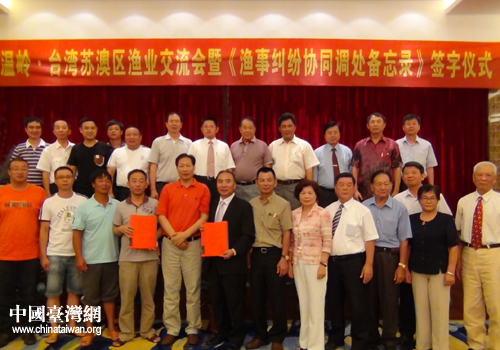 8月6日,溫嶺市松門(mén)臺(tái)胞站與臺(tái)灣蘇澳區(qū)漁會(huì)在溫嶺七星云頂酒店簽署了《浙江溫嶺·臺(tái)灣蘇澳區(qū)漁事糾紛協(xié)同調(diào)處備忘錄》,搭建起處置涉臺(tái)漁事糾紛新平臺(tái)。陳春生理事長(zhǎng)深情地說(shuō):“辦好這件事,對(duì)兩岸漁民功德無(wú)量,‘備忘錄’可作為一個(gè)范本,今后可在臺(tái)灣其他漁會(huì)中加以推廣”。7日、9日,該事件被國(guó)內(nèi)十多家主流網(wǎng)站進(jìn)行了轉(zhuǎn)載,產(chǎn)生了一定的影響。備忘錄規(guī)定了兩地漁民發(fā)生漁業(yè)糾紛后,雙方及時(shí)交換人員傷亡、財(cái)產(chǎn)損失、救助狀況等信息。同時(shí),各自協(xié)調(diào)有關(guān)部門(mén)對(duì)出事船舶進(jìn)行調(diào)查、取證,及時(shí)有效處置海上突發(fā)性事故,提高海上搜救效率,快速解決矛盾糾紛。(中國(guó)臺(tái)灣網(wǎng)溫嶺市臺(tái)辦通訊員 趙春林)